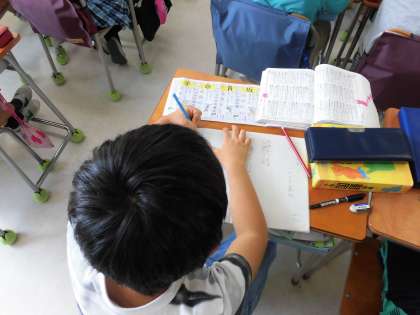 終業式前日の3年生の国語の時間の様子です。漢字の学習をしていました。習った漢字を使った言葉集めでは、辞書を活用していました。語彙を豊かにしていくことは、国語に求められる大きな力の一つです。みんな一生懸命に取り組んでいました。