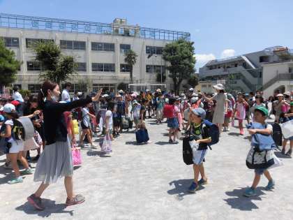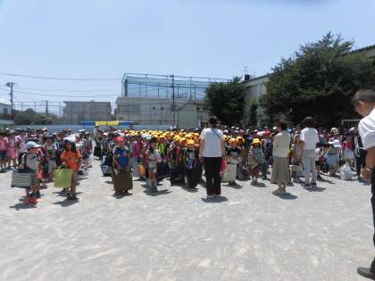 校内放送による終業式が終わると、全員校庭に集合しました。長い夏休みに入ります。最後はどうしても子供たちみんなであいさつをして1学期を終えようと思いました。1学期が無事に終わったこと、お世話になった多くの皆さんに「ありがとうございます」のあいさつをしました。みんなの大きな声が校庭に高らかに響き渡りました。笑顔あふれるあいさつになりました。44日間の夏休みに入ります。保護者の皆様、地域の皆様、関係の皆様、1学期の教育活動へのご支援とご協力に心から感謝申し上げます。