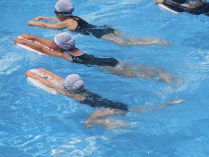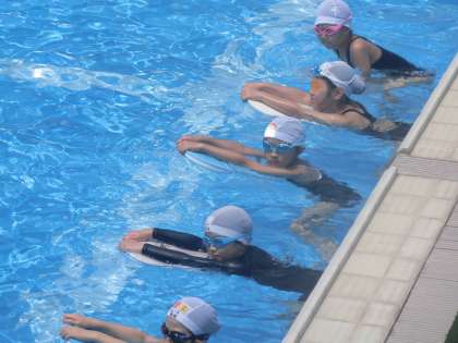 3・4年生は、平泳ぎの練習を行いました。ビート板を使って、足の動きをていねいに確認しました。難しい平泳ぎですが、みんな一生懸命に練習に打ち込みました。