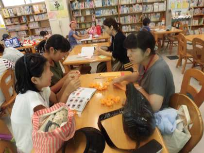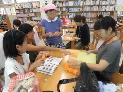 子供たちも手伝っていました。すてきな作品も次々できあがっていきます。和やかな雰囲気がいっぱいの池之上小学校学校図書館です。