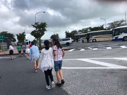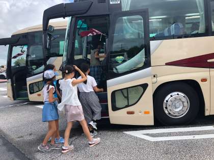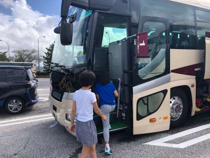雨が時折激しく降る時間もありましたが、羽生パーキングでは黒い雲の合間から太陽が顔を出していました。高速道路の渋滞もなく、羽生パーキングを9時10分に出発しました。これからレク係が楽しい時間を進行します。