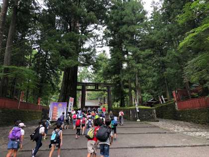 東照宮に着きました。今年は案内人の方に東照宮の詳しい説明をしていただきました。みんな真剣に聞いています。