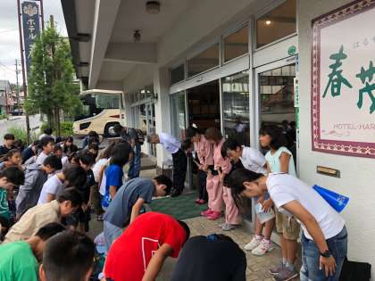 東照宮の見学を終え、ホテルに着き、開園式を行いました。代表の言葉、司会進行の言葉の中に「感謝」という言葉が何回も出てきました。子供たちの心と態度に感謝の気持ちがたくさん表れる、そんな3日間にしていきたいと思います。