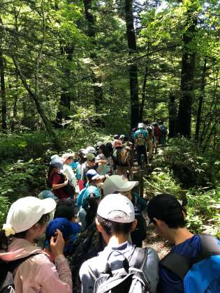湯滝から赤沼めざしてハイキングがスタートしました。自然の空気を感じて「気持ちいいなあ」とつぶやく子もたくさんいます。「日光は自然の冷蔵庫」とガイドさんからお聞きしたことを実感した瞬間です。およそ4.5キロのハイキング、がんばってきます。