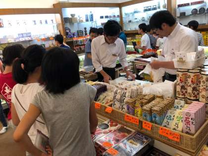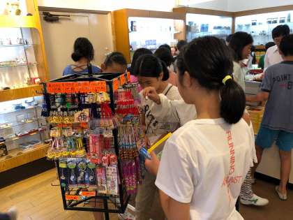 お風呂&お土産購入タイムになりました。今日の疲れをお風呂で癒します。お土産は明日の江戸村でも購入できるということで、いくらここで使おうか真剣に悩んでいます。「これもほしいなあ」と、手にとっては違う商品と見比べています。この時間も子供たちにとってはとても楽しい時間です。