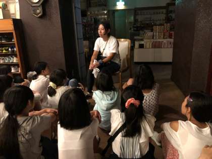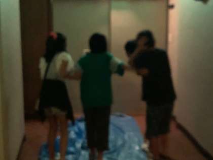 きもだめし大会まっただ中。スタート。4人で ミッション。ゴールの様子です。