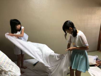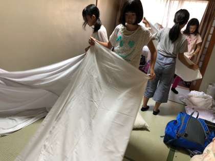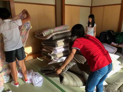 お世話になった宿舎の皆様とのお別れのときがやってきました。思い出の日光とお別れです。感謝の心を形に表す子供たち。部屋をていねいに片付けます。友達と協力しながらがんばりました。