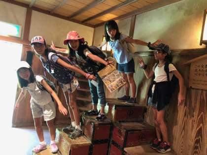 たくさん楽しめる催し物があります。グループで相談しながら江戸の町を堪能しています。