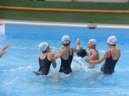 高学年は、水中バスケットにも挑戦しました。
