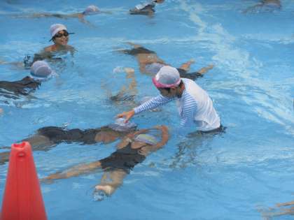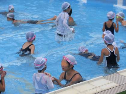一人一人ががんばった夏季水泳指導。低学年のサポートとして5・6年生の水泳部の子供たちもほんとうにがんばりました。いつ見ても、前向きに優しい心で一生懸命に活動していました。1・2年生にとってはあこがれの高学年の姿です。優しい声かけに水の中でも安心して練習に励むことができました。