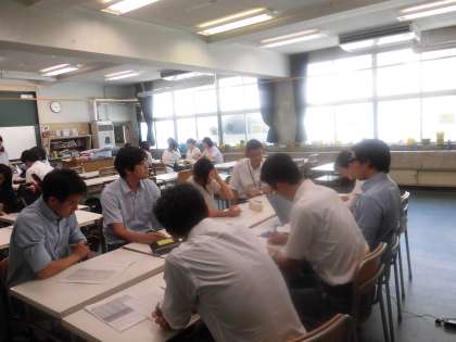 教科ごとの話し合いが行われた後は、富士の学び舎合同企画会が開催されました。「豊かな知力『知』の分科会」「豊かな人間性『徳』の分科会」「健やかな身体・たくましい心『体』の分科会」「『交流』の分科会」の4つに分かれて学び舎の取り組みを充実させています。3枚目の写真は4つの分科会での話し合いの様子です。