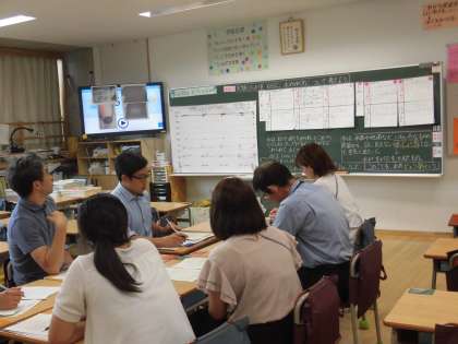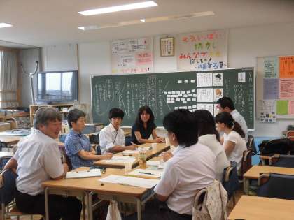 授業公開の後は、子供たちの力を一層伸ばしていくために必要な授業改善の手立てについて、小学校・中学校の教員が集まって話し合いを行いました。子供たちにとって魅力ある授業、子供たちの力を伸ばしていく授業を目指していきます。