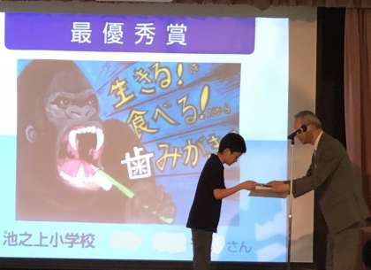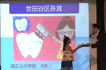 9月5日、「平成30年度 歯と口の健康に関する『図画・ポスター展』入賞者表彰式」が世田谷区民会館で開催されました。世田谷区内の子供たちが参加、総数2586点の応募があったそうです。池之上小学校の子供たちもたくさんの素晴らしい賞を受賞しました。6名の子供たちが最優秀賞・世田谷区長賞・世田谷区歯科医師会会長賞・審査委員会賞・優勝賞をいただきました。どの作品も豊かな表現力で心をひきつけられます。