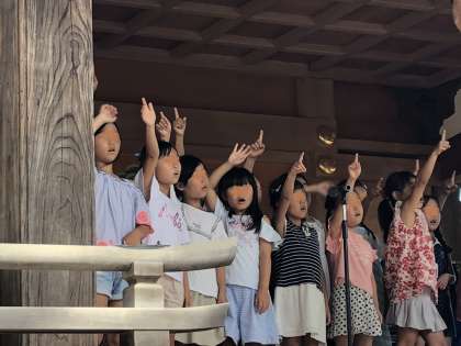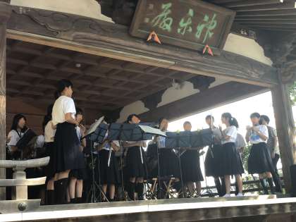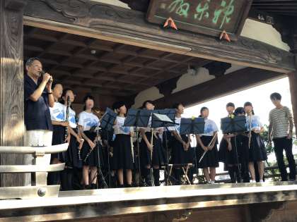 9月8日の午後、代沢地区町会連合会主催「鎮守の杜のコンサート」が開催されました。このコンサートでは、池之上小学校、多聞小学校、代沢小学校の子供たちの明るく元気なゴスペルの歌声や富士中学校吹奏楽部のすばらしい演奏が披露されました。北澤八幡神社の境内にさわやかな風が吹く中、子供たちの活躍をうれしく思うひとときでした。その他にもすてきな感動の歌を聴かせていただきました。午後の心休まる時間となりました。