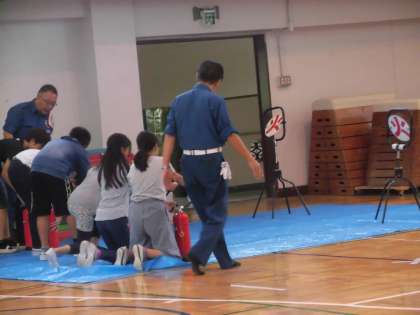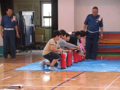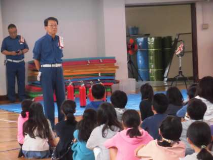 6年生全員が、消火器の使い方を体験しました。防災課の担当の方から、火事を発見したら「大きな声で伝えることが一番大切。危険な状況では決して火のそばに近寄らないこと。」と、命を守るための大切なお話をしていただきました。