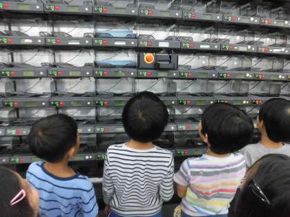 手紙の分類について教えていただきました。大きな大きな機械を通る手紙。あっという間に通り過ぎていく手紙を見て、そのスピードに驚きました。世田谷区に運ばれる手紙を見つける子供もいました。子供たちの真剣な表情が印象的でした。