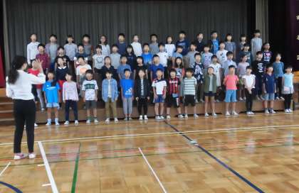 立派な発表を堂々と行った4年生。4年生の声が一つにそろい、体育館に響きました。「ありがとう」が心に伝わりました。言葉の大切さを考える時間になりました。4年生はこの発表会を迎えるまで、たくさんの練習を重ねてきました。当日の朝も早めの登校で、リハーサルを行いました。先生とめあてを確認したり、振り返りを行っている様子です。