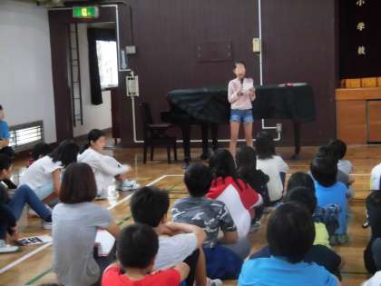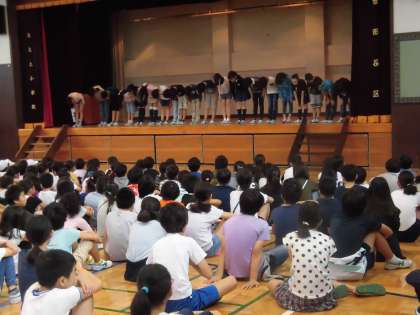 人数の多い代表委員もみんなで心を合わせてあいさつを行いました。練習の成果が発揮され、しっかりそろって「礼」ができました。発会式の司会進行も子供たちが行いました。5年生が担当しました。池之上小の中心となって支えてくれている6年生から、一つ一つバトンが5年生に渡されていきます。これから始まる後期委員会活動を応援する拍手もたくさん。子供たちのがんばりがスタートします。
