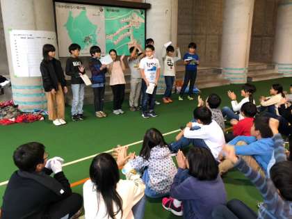 「池之上 室内オリンピックin川場」がはじまりました。レク係が大活躍。企画、司会進行をがんばっています。