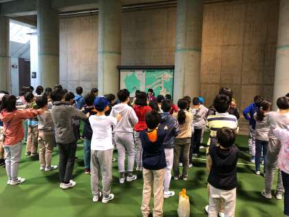 2日目の朝を迎えました。自分たちで朝の支度を終えて、朝会が行われました。「おはようございます」のあいさつの後、朝のラジオ体操で身も心もリフレッシュ。今日も1日がんばります。