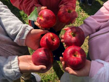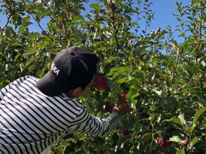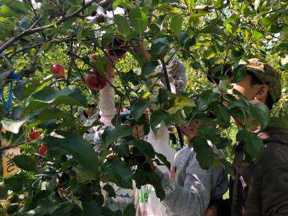 心を込めて育てているリンゴを収穫させていただきました。「赤城」という東京では見かけることの少ない地元の品種だそうです。