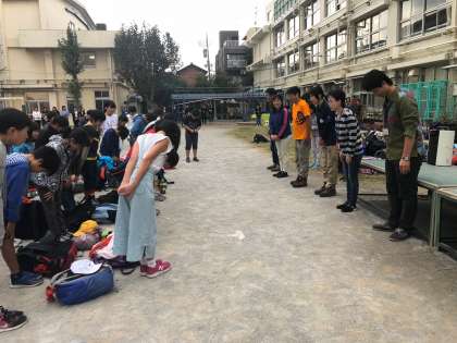 学校に到着後、帰校式を行いました。司会進行、代表の言葉を子供たちが務めます。とても立派でした。最初に、無事に帰ってきたあいさつをお迎えの皆さんにしました。お世話になった先生や補助員の皆さん、看護師さん、カメラマンさんから言葉をいただきました。思い出いっぱいの3日間になりました。5年生の活躍をうれしく感じています。