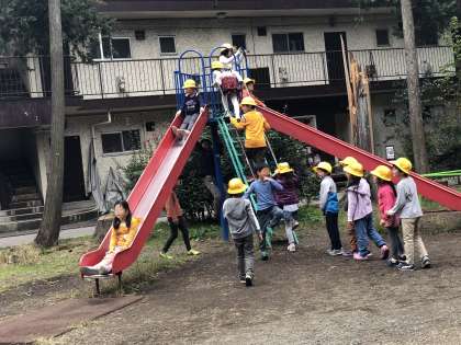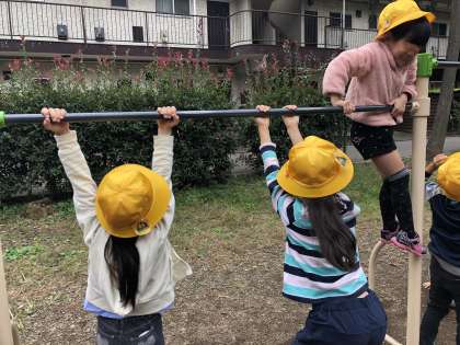 子供たちが仲よく助け合ったり、約束を守って行動できたりした遠足。電車に乗る時間までゆとりをつくることができました。そこで、みんなで駅近くの公園で遊ぶことになりました。子供たちは大喜び。滑り台や鉄棒で思い切り遊びました。