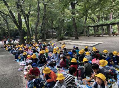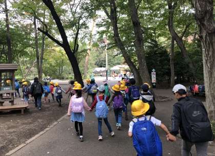 井の頭自然文化園に場所を移すと、最初にお弁当をおいしくいただきました。お昼ごろに雨が降る予報が出ていましたが、子供たちの願いが届いたのか、一度も雨に降られることがありませんでした。今日はたくさんの学校が遠足に来ていました。できるだけまとまって行動するように心がけました。