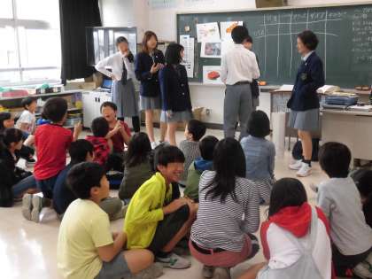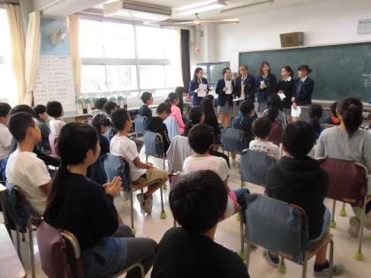 高学年はこれまでの外国語活動の学習を生かしながら、高校生とのコミュニケーションを楽しみました。