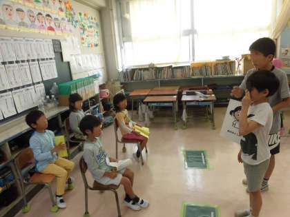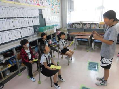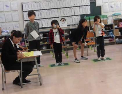 目の検査では、入学前の小さな子供たちに検査のやり方をやさしく教える5年生の姿がありました。高学年としての成長をうれしく思いました。