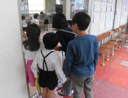 10月26日、来年度新1年生として池之上小学校に入学予定の園児の皆さんの就学時健康診断が行われました。毎年、5年生が健康診断のお手伝いを行っています。今年度も池之上小学校の5年生がたくさんの仕事を分担し、とても前向きな態度で就学時健康診断を支える役割を担いました。5年生はちょっぴり緊張していたようですが、優しく手を差し伸べ、健康診断会場を案内していました。学校の様子をていねいに伝える姿もありました。一生懸命さと優しい気持ちがたくさんあふれていました。