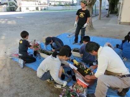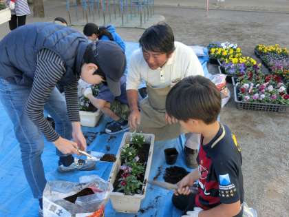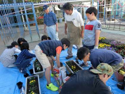 11月の委員会活動において、花の栽培指導をしていただきました。指導を受けるのは整美委員会の5・6年生です。指導していただく方は、世田谷区の園芸農家の皆様です。世田谷区は都会に位置していますが、比較的、緑が多く自然が豊かな地域です。野菜農家、果物農家、園芸農家と農家のお仕事をされていらっしゃる方も多いそうです。今日は園芸農家のお二人から、パンジーとビオラ、チューリップの植え方と育て方を教えていただきました。子供たちの植えたお花がいっぱいに咲く日を楽しみに、今日からお世話をしていきます。