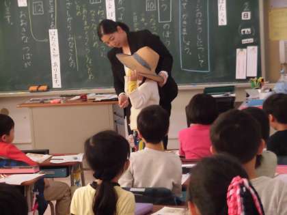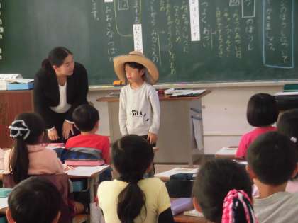 実際に日よけ用の麦わら帽子をかぶって、帽子の働きを考えました。子供たちからたくさんのいい意見が発表されました。みんな意欲に自分の考えを伝え合っていました。