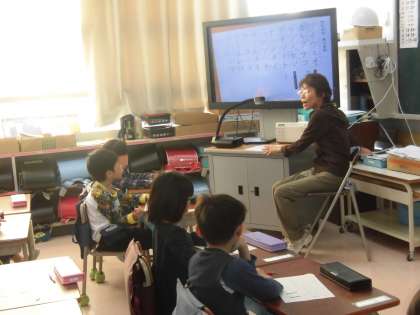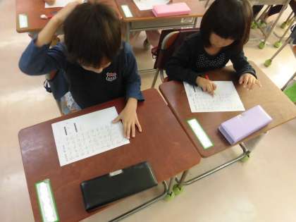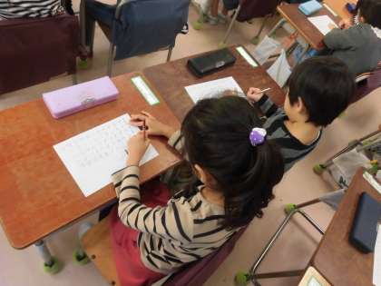 ワークシートを使って、カタカナを使う言葉を集めをしました。先生と一緒にテレビ画面で確認をしながら活動を深めていきました。