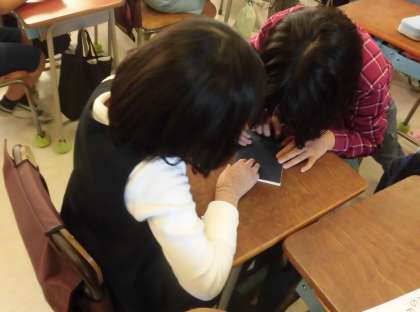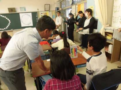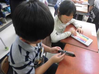 身の回りのアルファベット探しを行いました。友達と協力して、学習道具や教室にあるものを確認しました。あちらこちらから「Aがあった。」「Kを見つけたよ。」と声が上がります。