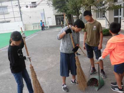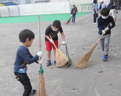 11月6日、朝の池之上小学校の子供たちの様子です。様々な場で子供たちの活躍する姿が見られました。校庭では落ち葉掃き・・・6年生のあいさつからスタートします。少し大きめのほうきを一生懸命に使って落ち葉を掃く子供たちもいました。門からは子供たちの元気なあいさつが聞こえてきます。教室では、読書活動が進められました。
