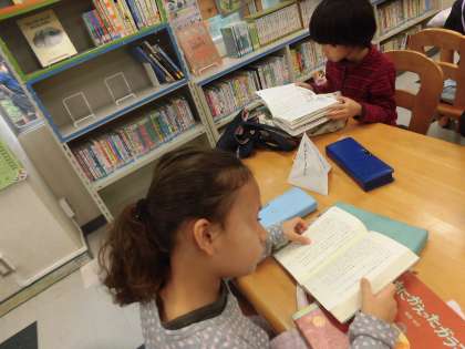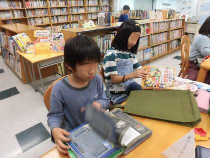 こうしたすてきな環境となった学校図書館を活用して、2年生が学習を深めていました。みんな一生懸命に本を読んでいました。
