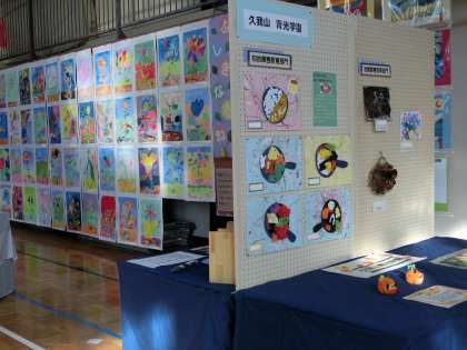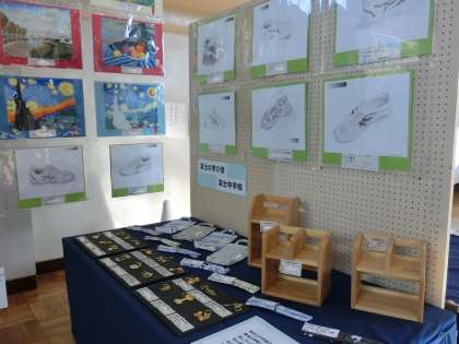 都立久我山青光学園、富士中学校の皆さんの作品です。4年生と交流している青光学園の子供たち。あこがれの中学生・・・池之上の子供たちも真剣にすてきな作品に見入っていました。