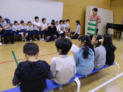 11月22日、4年生の子供たちと都立久我山青光学園の子供たちとの交流活動が行われました。4年生が毎年2回行っている交流活動の第1回目です。学園に着くと、先生方にあいさつをして、いよいよ交流活動がスタートしました。お迎えに来てくれた青光学園の子供たちと初めての対面の場面です。手をつないで教室に向かう子もいました。握手を交わす子もいました。