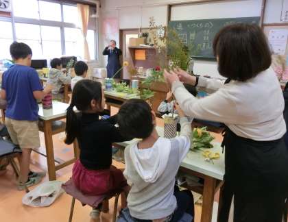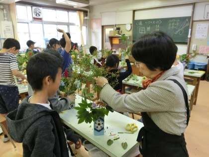 花と向き合いながら「道」の世界を知る5年生