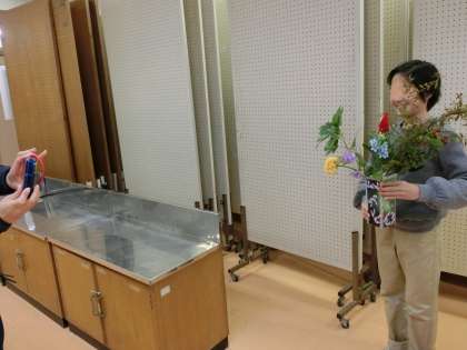 一生懸命に生けたお花。生けた時の思いをご指導いただいた先生に言葉で伝えました。一人一人に花と向き合った時の豊かな気持ちがあることが分かりました。様々な距離や角度の「間」をとりながら何度も何度も花を見つめる子供たちから一生懸命さが伝わってきました。最後に生けたお花を手にして先生が写真を撮りました。
