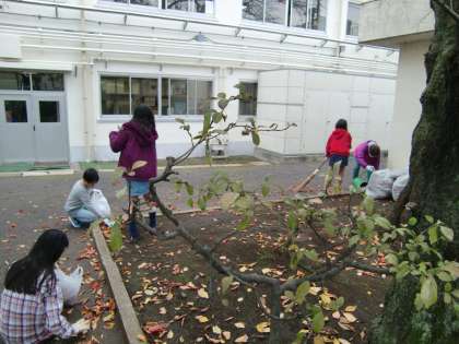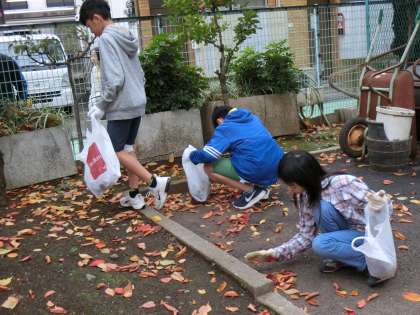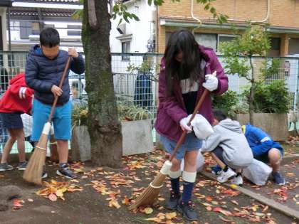 ごみがあまり落ちていなく池ノ上の町がとてもきれいなことがわかりました。地域の皆さんがいつもきれいにしてくださっていることや、マナーよく過ごしていることがわかりました。本格的な冬が近づき、たくさんの落ち葉があちらこちらに舞い降りています。今日のクリーン作戦では落ち葉を拾い集めることにしました。みんな一生懸命です。