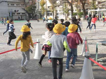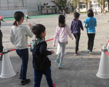 12月3日からペースランニングがはじまりました。子供たちは友達と声を掛け合い準備体操をしてから走りはじめます。スタートの入り方にもルールがあり、斜めに合流することで接触を防ぎます。みんなでルールを守って安全にも心がけています。