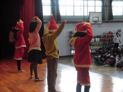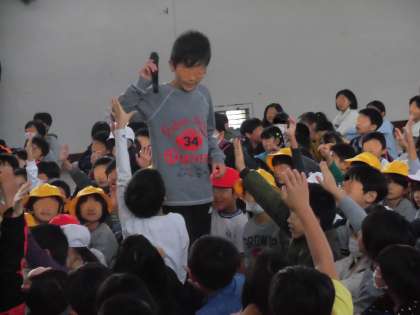 集会委員の子供たちのがんばりが光っていました。舞台で演じたり、司会進行したり、クイズに回答する子供たちにマイクを向けたり・・・と12月も楽しい集会を企画・運営した5・6年生に大きな拍手がおくられました。