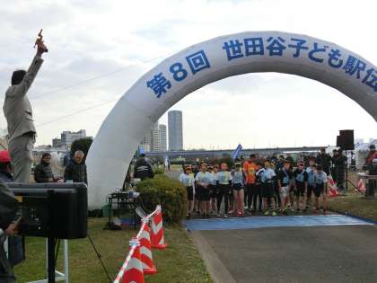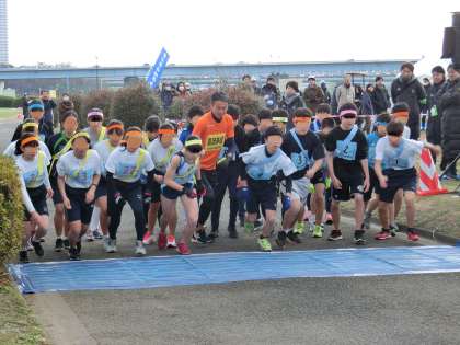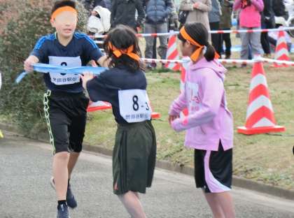 いよいよスタートです。オレンジのハチマキが富士の学び舎です。第1走者は中学生、第2走者から第7走者の6名が小学生、そして第8走者から第10走者が中学生です。小学生各1キロ、中学生各2キロを走ります。合計郷里14キロを10名がつなきます。富士の学び舎の全ての選手が一堂に集まり練習する機会をつくることができなかったため、スタート前の顔合わせでチームの団結を高めていきました。すぐに仲間の意識を高めていく子供たち。タスキをしっかり渡す子供たちの真剣なまなざしがすてきでした。駅伝のすばらしさは、一人一人の力をつないでいくところにあります。みんなのがんばりがまとまっていく瞬間です。タスキを渡すその瞬間に、子供たちの心が込められました。