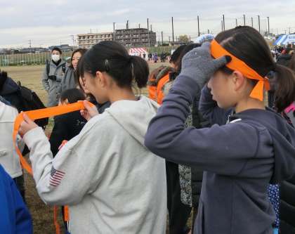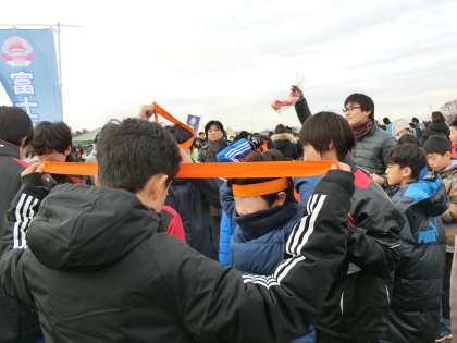 12月16日、日曜日の二子玉川緑地公園で「第8回 世田谷子ども駅伝」が開催されました。世田谷9年教育を推進する世田谷区の大きなイベントの一つです。この駅伝は、小中学生がチームを編制することに大きな意義があります。富士の学び舎の4校も昨年度に引き続き参加することになりました。積極的に手を挙げてくれる子供たちがとても多く、4チームも参加することになりました。池之上小学校からも5年生が6人、6年生4人が参加しました。前向きなチャレンジ精神と、一歩でも前に進もうと努力するひたむきな姿、友達と協力し合う心を10人の子供たちが見せてくれました。富士の学び舎4チームは「チームせせらぎ」と名前をつけました。オレンジはちまきで気合も入れました。たくさんの保護者の皆様、地域の皆様も応援に駆けつけてくださいました。