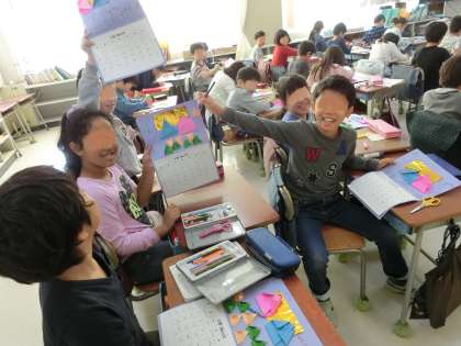 一生懸命に作ったカレンダーを笑顔いっぱいに見せてくれました。その後はお楽しみ会で盛り上がりました。マジックショー、ダンス・・・みんなで心から楽しみました。この日を迎えるまでに、たくさん練習をしていた子供たちを見てきました。大成功も練習の賜です。