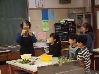 3学期最初の花を生ける活動がありました。今日のお花は「アネモネ」と「フリージア」「リューココリーネ」「フェイジョア」です。以前、花ボランティアの方から、花の話・植物の話をうかがったことを思い出しました。花を見ると、落ち着きのない人は集中力を、元気のない人は明るさのアップにつながるというお話です。日本で行われた研究の結果です。人間には、花を見ることで、気持ちをちょうどいいくらいに保つ、調節機能があるのだそうです。教室に飾られた花で心和むことができることを幸せに感じています。