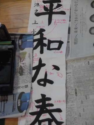 5・6年生のめあては「真心をこめて」書くことです。一人一人が自分の書いた文字に向き合っていくことで字に真心が込められるのだと思います。めあてに向かって努力するすてきな時間になりました。そして・・・練習時から心を込めて取り組んでいたのだろうなと感じる瞬間もありました。お手本に気を付けることを赤ペンでたくさんメモしている子がいたのです。一文字一文字を大切にして文字に向かっている姿が目に浮かんできました。真心を込めて向かい合う真の姿を感じることができました。