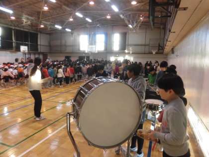 音楽朝会が終わると、司会進行でも活躍した音楽委員の5・6年生が行進曲を演奏しました。音楽が少し苦手だった子もぐんぐん上達して、自分の楽器を立派に担当しています。演奏が終わると、5年生が拍手をおくり、片づけを手伝いました。5年生も間もなく6年生に進級します。池之上小学校を支えていきます。5年生の子供たちの優しさとたくましさを感じました。